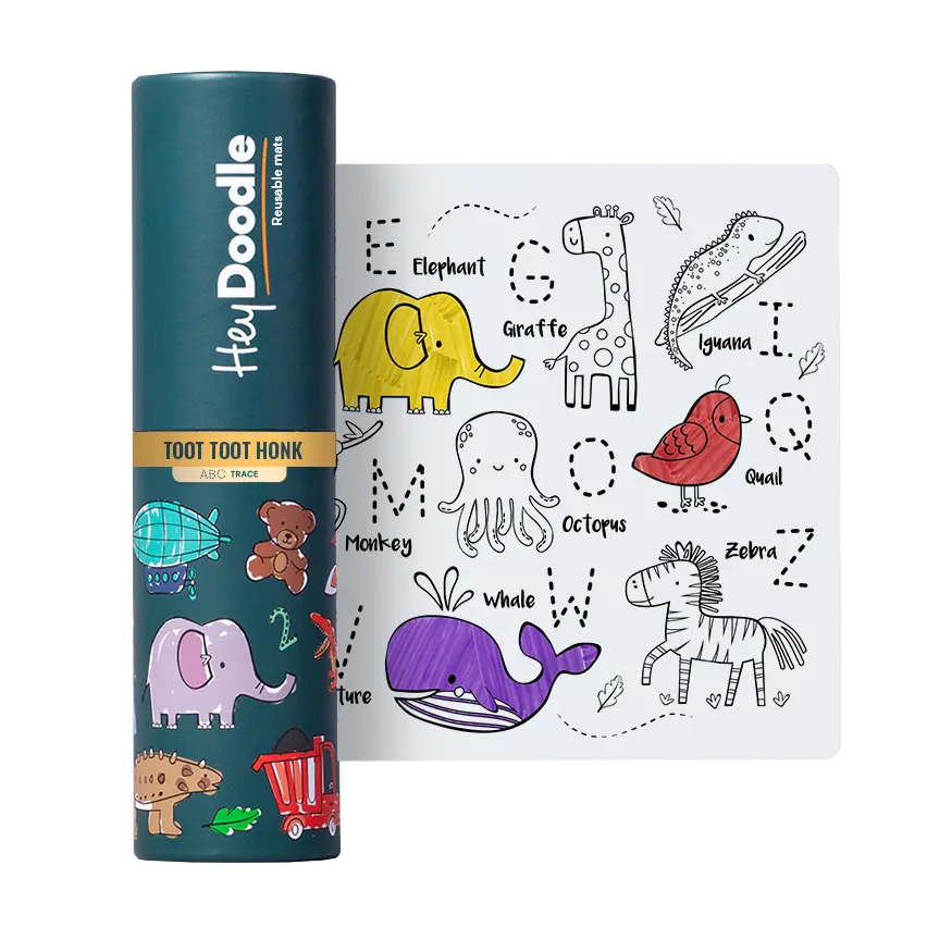 Mata silikonowa HeyDoodle „Into the Wild” łączy kreatywną zabawę z nauką alfabetu i pierwszych słów po angielsku.