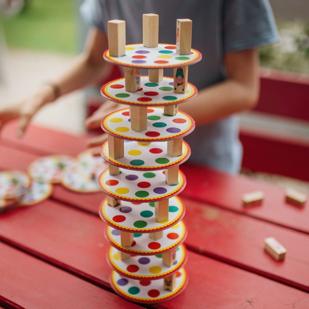 Precyzja i motoryka: Ustawianie małych figurek na wysokich poziomach wieży to genialne ćwiczenie koordynacji ręka-oko.
