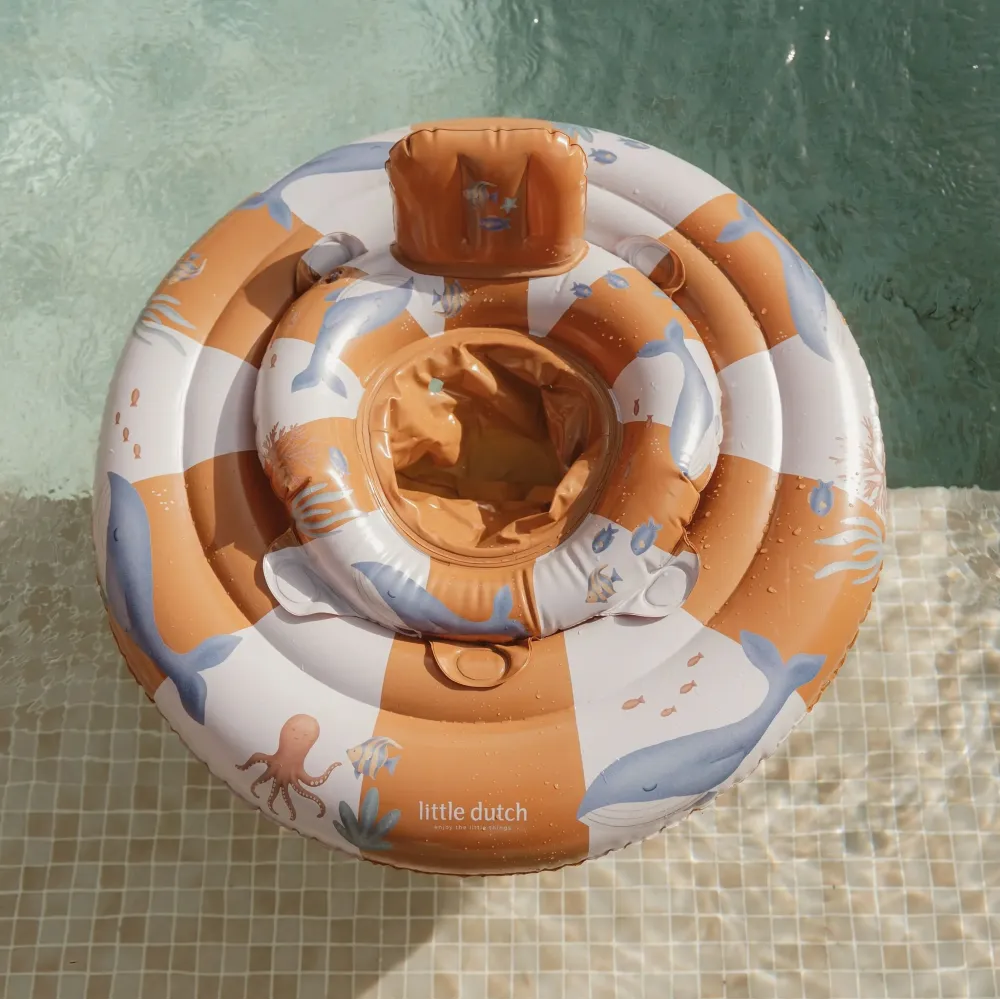 Kółko treningowe Little Dutch Ocean World to dmuchany fotelik do wody, który daje dziecku stabilne podparcie i pozwala oswoić się z wodą krok po kroku.